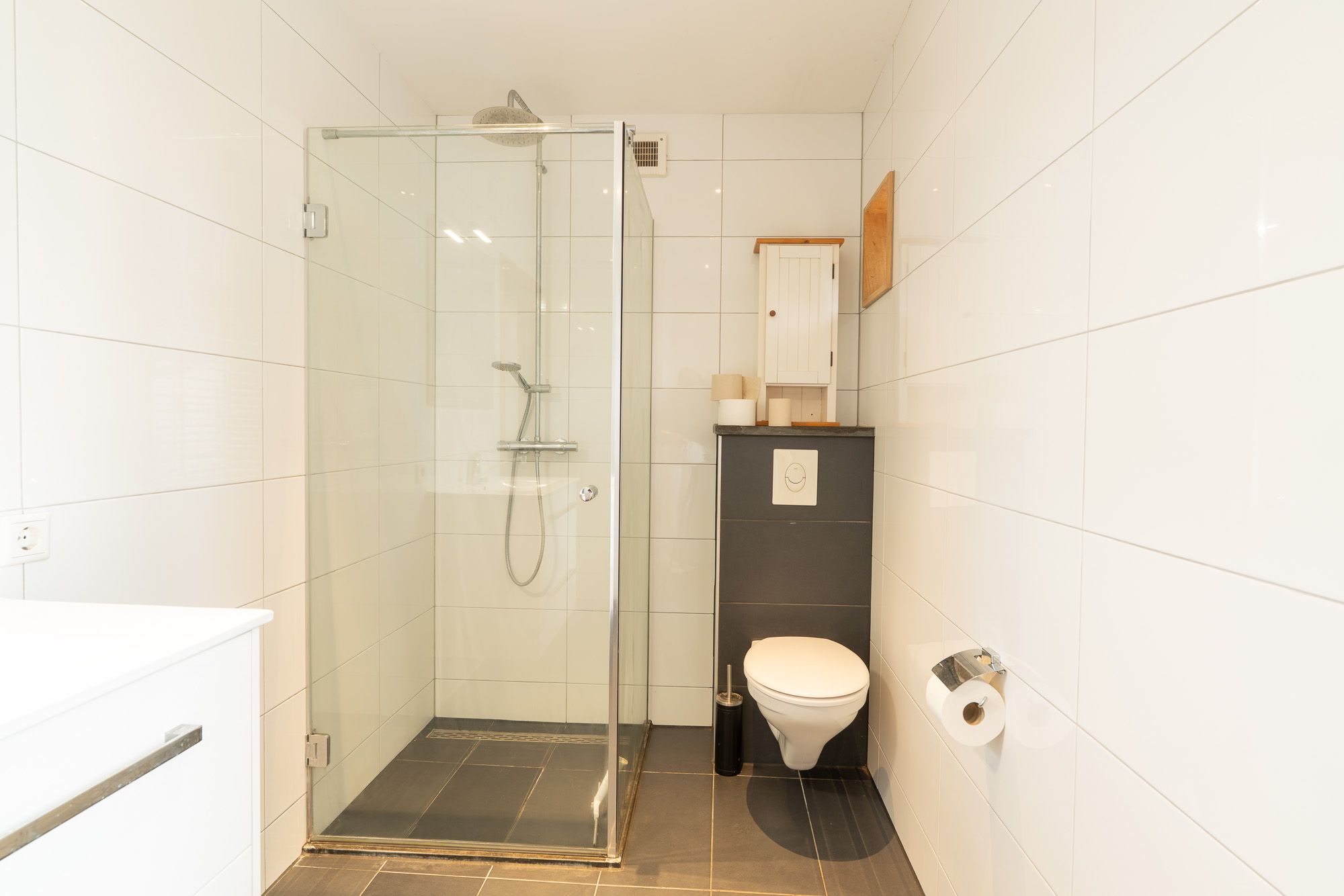In het verlengde van deze kamer bevindt zich de keuken aan de achterkant van de woning. Deze keuken is gedateerd en biedt een uitstekende kans om deze ruimte volledig naar eigen smaak in te richten en zo het culinaire hart van de woning te creëren. De begane grond huisvest tevens de moderne badkamer, die onlangs volledig is vernieuwd. Met een inloopdouche, een strakke wastafel, een hangend toilet en de aansluiting voor een wasmachine, biedt deze ruimte alle comfort van nu. Naast de keuken is er een separaat, vernieuwd gastentoilet met een frisse en moderne uitstraling. De slaapkamer op de begane grond maakt het plaatje compleet en biedt het gemak van gelijkvloers wonen.